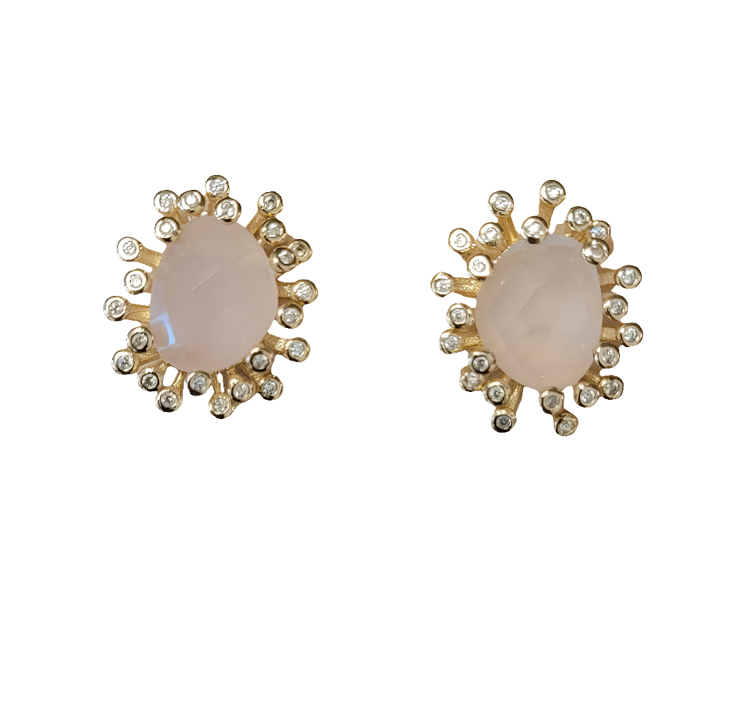 estones ese095 cz&rose quartz earrings